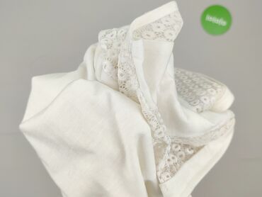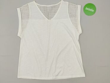 Biała damska koszulka bez rękawów z koronkowym tyłem - Krój: luźny top na ramiączkach, okrągły dekolt - Przód: gładki, lekki materiał - Tył i wstawki po bokach: ażurowa koronka z geometrycznym wzo...