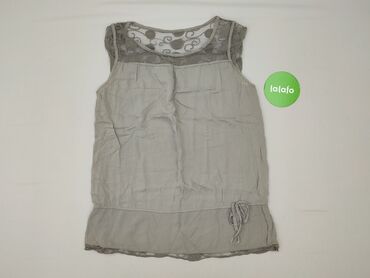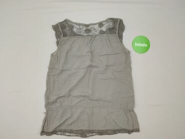 Top damski bez rękawów – luźny, zwiewny krój. - Kolor: jasnoszary/melanż. - Tkanina: lekka, cienka, przypominająca len lub mieszankę lnianą; miękka, oddychająca. - Fason: szeroki, oversize z mar...