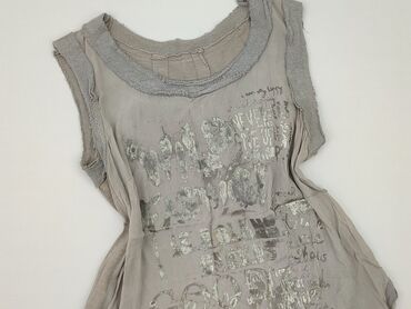 Bez rękawówSzara bluzka bez rękawów z nadrukiem i metalicznymi napisami