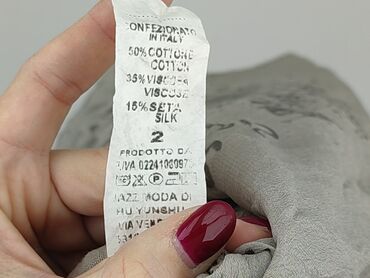 Szara koszulka z długim rękawem z nadrukiem - Materiał: 100% bawełna (etykieta „100% cotone”). - Krój: prosta, lekko wydłużona, z delikatnie asymetrycznym dołem (małe rozcięcie z przodu). - De...Stan: