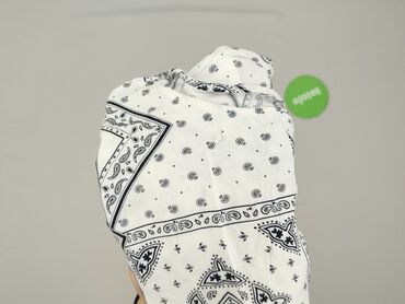 Bez rękawówBiała bluzka damska bez rękawów, ozdobiona wzorem bandana w odcieniach czerni i szarości. Charakteryzuje się kołnierzykiem i zapięciem na guziki, co nadaje jej klasyczny wygląd. Wykonana z wiskozy, zapewnia komfort noszenia i lekkość, idealna na ciepłe dni.