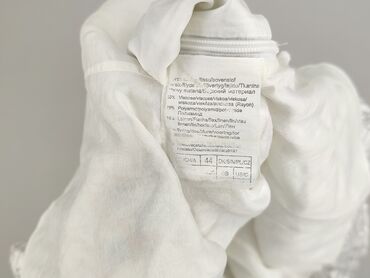 Biała, zwiewna bluzka bez rękawów dla kobiety. - Krój: luźny, prosty, z zaokrąglonym dekoltem; lekko dłuższy tył - Materiał: 90% wiskoza, 9% poliester, 1% elastan – cienka, półprzezroczysta tkanin...