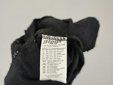 Czarna bluzka damska z krótkim rękawem z tiulu - Rozmiar: S (na metce) - Materiał: 100% poliester - Krój: dopasowany, długość do bioder - Dekolt: szeroki, zaokrąglony - Rękawy: bufiaste, wykonane ...