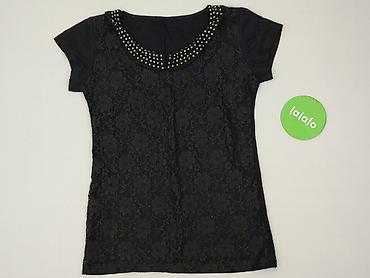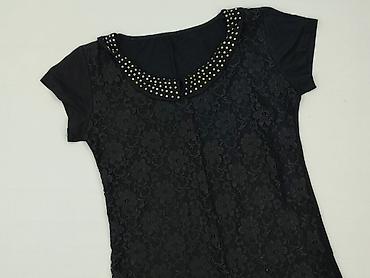 Bluzka damska F&F, rozmiar EU 36 (UK 8). - Kolor: czarny - Krój: prosty, z okrągłym dekoltem - Rękawy: krótkie z siateczki - Góra bluzki: transparentna siateczka z aplikacją/haftem w kwiaty...