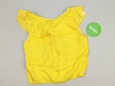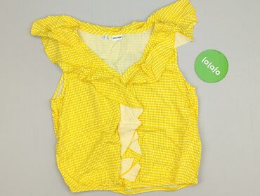 Żółta bluzka damska bez rękawów - Rozmiar z metki: 38 - Krój: luźny, lekko zaokrąglony dół, przedłużony tył, delikatnie opadające ramiona (cap sleeves) - Dekolt: w kształcie litery V - Materiał: c...Stan:
