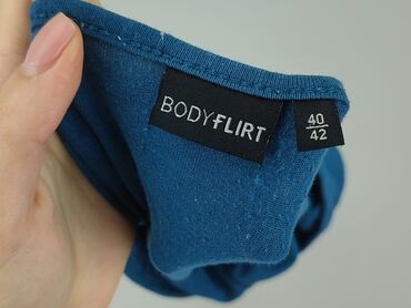 Bluzka damska BODYFLIRT - Kolor: intensywny niebieski - Rękawy: 3/4, ozdobne lampasy wzdłuż rękawów w kolorach żółtym, białym i czarnym, z metalowymi oczkami - Dekolt: okrągły - Fason: prosty, lek...