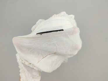 Biała bluzka damska z krótkim rękawem - Krój: luźna góra z szerokim, elastycznym pasem u dołu (smocking) podkreślającym talię - Dekolt: prostokątny, lekko odkryte ramiona - Rękawy: krótkie, delika...