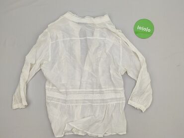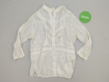 Biała bluzka damska z długim rękawem - Lekka, przewiewna tkanina o delikatnej, pionowej fakturze (miękko układający się materiał). - Ozdobne, poziome wstawki z koronki/ażuru z przodu i na obwodzie...Stan: