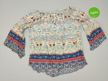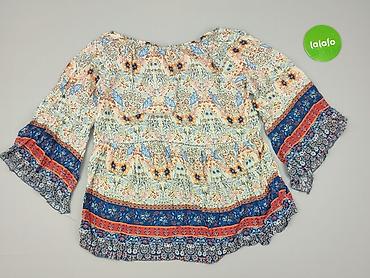Bluzka damska w stylu boho, w kolorze jasnego beżu/ecru. - Krój: luźny, lekko przedłużany dół, krótkie rękawki motylkowe. - Dekolt: szeroki, z możliwością noszenia na ramionach lub opuszczony; wi...