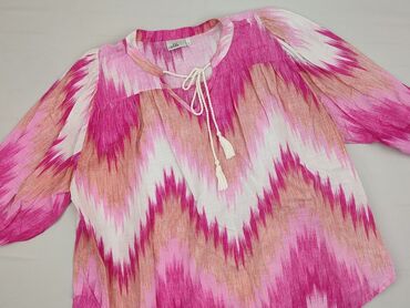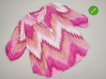 Bluzka damska Repeat, rozmiar L - Fason: luźna, z marszczeniem pod dekoltem i przy karczku; dół lekko zaokrąglony - Rękawy: długie, bufiaste, zakończone gumką - Dekolt: wiązany na wstążkę - Materi...