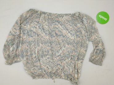 Bluzka damska w stylu boho, w kolorze jasnego beżu/ecru. - Krój: luźny, lekko przedłużany dół, krótkie rękawki motylkowe. - Dekolt: szeroki, z możliwością noszenia na ramionach lub opuszczony; wi...