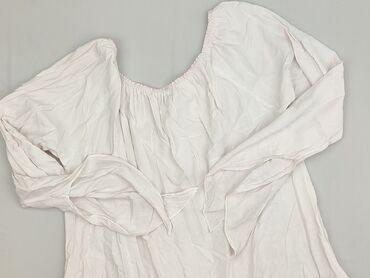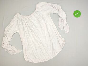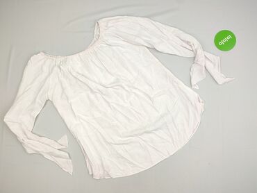 Jasnoróżowa bluzka damska o luźnym kroju, wykonana z wiskozy. Charakteryzuje się dekoltem w kształcie litery V z wiązaniem, co pozwala na regulację. Rękawy o długości 3/4 są szerokie, zakończone ro...