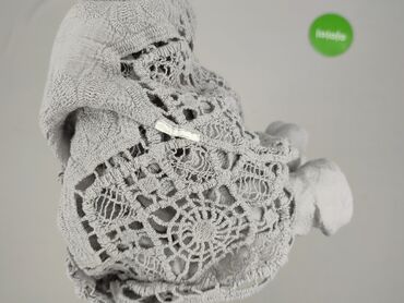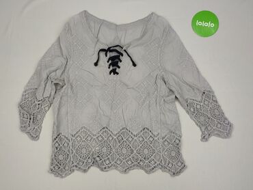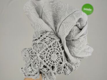 Bluzka damska z koronką, kolor jasnoszary. - Fason: luźny, z okrągłym dekoltem - Rękawy 3/4 z ażurowej koronki o kwiatowym wzorze - Przód częściowo pokryty koronką, tył gładki dzianinowy (melanż) ...
