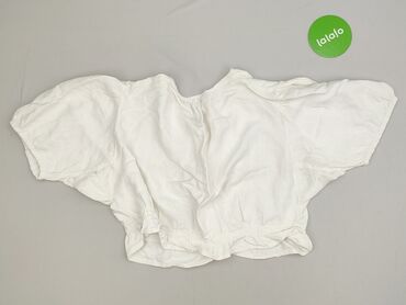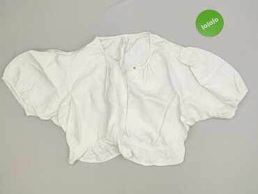 Biała koszulka/bluzka z krótkim rękawem, rozmiar M. - Krój: prosta linia, okrągły dekolt bez ściągacza, zapięcie na guziki wzdłuż całego przodu. - Rękawy: krótkie, lekko luźne. - Materiał: lekko...