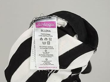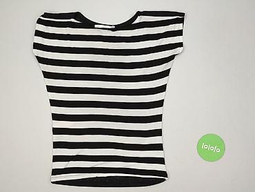 Bluzka damska F&F w paski - Model: krótki rękaw, dekolt w serek (V-neck) - Wzór: poziome białe paski na czarnym tle - Rozmiar z metki: EU 42 (UK 14) - Wymiary orientacyjne z metki: biust 98 cm (38...