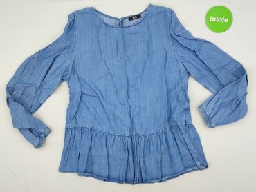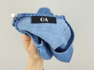 Bluzka damska C&A – jeansowa/denimowa koszula z długim rękawem - Krój: luźny, swobodny, zaokrąglony dół (nieco dłuższy tył) - Dekolt: w serek (V) bez kołnierzyka, z listwą guzikową na 4 guziki - R...Stan: