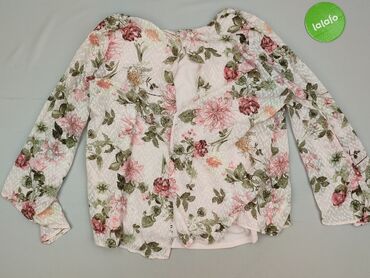 Bluzka damska w kwiaty - Krój koszulowy z klasycznym kołnierzykiem i zapięciem na guziki z przodu - Długie, bufiaste rękawy zakończone gumką przy mankietach - Wzór: wielobarwny, gęsty motyw kwiato...