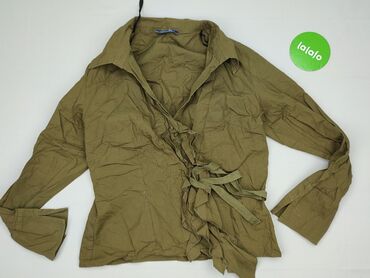 Bluzka damska z długim rękawem, zapinana na guziki - Kolor: ciemna oliwka/brąz khaki - Krój: luźny, swobodny; opuszczona linia ramion, dekolt w kształcie łagodnego V/okrągłego - Zapięcie: rząd jas...
