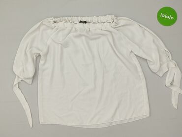 Bluzka hiszpanka COLLOSEUM Collection - Krój: odkryte ramiona (off-shoulder) z szeroką falbaną - Ozdoba: biała, ażurowa koronka biegnąca wzdłuż falbany - Kolor: jasny denim/niebieski - Rozmiar z m...
