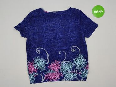 Bluzka damska BE YOU - Krój: luźny, prosty, z krótkim rękawem; delikatnie dłuższy tył - Dekolt: okrągły - Wzór: granatowa baza z kwiatami i motywem ptaków, pastelowe odcienie różu, zieleni, bieli ...