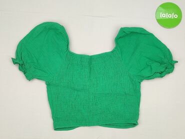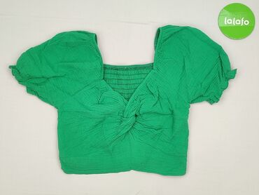 Krótki rękawZielona bluzka crop top z krótkim rękawem, wykonana z teksturowanej tkaniny. Posiada kwadratowy dekolt z marszczeniem z przodu, nadającym jej dopasowany krój. Krótkie rękawy są bufiaste, a bluzka posiada z przodu dekoracyjne wiązanie. Idealna na co dzień, na lato.