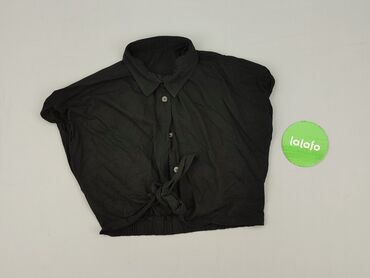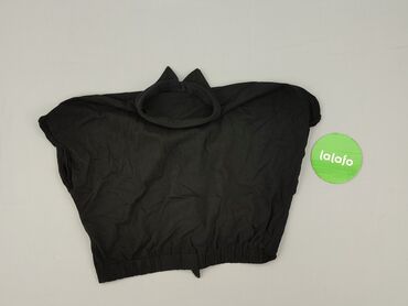 Czarna bluzka damska Sinsay, rozmiar M. - Krój: krótka koszulka typu crop top - Dekolt: zaokrąglony z ozdobnymi krzyżującymi się paseczkami z przodu - Rękaw: krótki - Dół: wiązanie na supeł z przo...