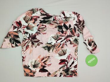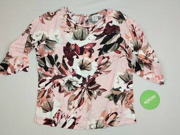 Bluzka damska MYHOLLS, rozmiar L - Krój: luźny, lekko wydłużony dół - Dekolt: łódkowy z małym wycięciem i zapięciem na guzik z tyłu - Rękawy: długie, rozszerzane (falbanowe) - Wzór: kwiatowy w odc...