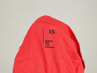 Bluzka damska Diverse, rozmiar XS. - Kolor: intensywna czerwień - Fason hiszpanka/off-shoulder – szeroki, elastyczny dekolt pozwala nosić odkryte ramiona - Rękawy krótkie, szerokie, efektowne falb...