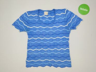 Bluzka damska M&Co - Krój: lekko luźny, z krótkim rękawem - Dekolt: okrągły, z wycięciem i zapięciem na guzik z tyłu - Wzór: biało‑niebieskie pasy w różnych szerokościach - Ozdoby: delikatne, biał...