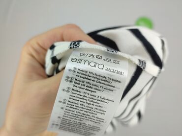 Damska bluzka Esmara z długim rękawem, w paski, z okrągłym dekoltem. Charakteryzuje się połączeniem bieli z czarnymi paskami oraz zielonym karczkiem. Na ramieniu znajdują się białe guziki, które do...
