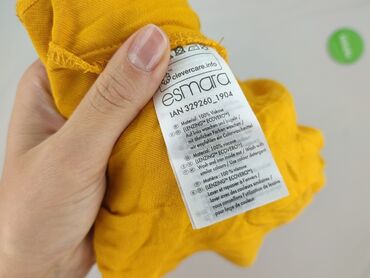 Bluzka damska Esmara w paski - Krój: luźny, z krótkim rękawem typu kimono - Dół z troczkami do wiązania po bokach - Wzór: pionowe paski w odcieniach żółci i bieli - Materiał: 97% wiskoza (LENZING ...Stan: