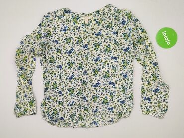 Bluzka damska marki Esprit w rozmiarze 38, zdobiona wielokolorowym, kwiatowym wzorem na białym tle. Charakteryzuje się dekoltem w kształcie litery V z ozdobną listwą guzikową i długimi rękawami zak...