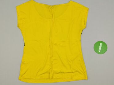 Żółta bluzka damska z krótkim rękawem i okrągłym dekoltem. Fason bluzki jest luźny, rękawy są podwinięte. Idealna na co dzień, zapewnia komfort noszenia. Bluzka wykonana jest z poliestru i wiskozy ...
