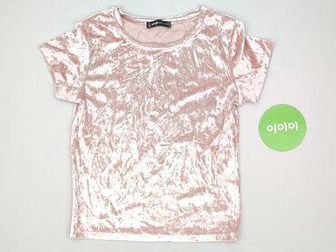 T-shirt damski FB Sister, rozmiar XXS. - Materiał: welur/crushed velvet o miękkiej, połyskującej fakturze - Kolor: przygaszony róż/ciemny pudrowy róż z marmurkowym efektem - Krój: klasyczny T-shirt...