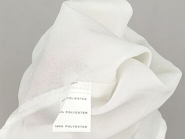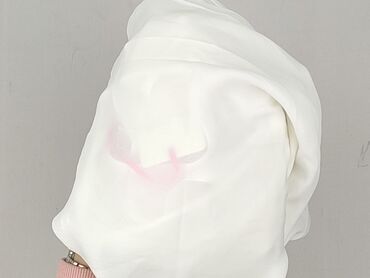 Biała damska bluzka z lekkiej, półprzezroczystej tkaniny (styl szyfonowy). - Fason: luźny, prosty krój typu boxy, bez klasycznych rękawów (opadające ramiona). - Dekolt: okrągły. - Zapięcie: z...