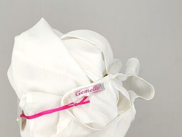 Bez rękawówBiała bluzka damska bez rękawów marki Gemello. Charakteryzuje się okrągłym dekoltem i asymetrycznym dołem z ozdobnym wiązaniem z przodu. Z tyłu bluzka posiada rozcięcie z zapięciem na guzik, co dodaje jej elegancji i ułatwia zakładanie. Wykonana w 100% z poliestru, co zapewnia jej lekkość i przewiewność. Idealna na co dzień, do pracy lub na specjalne okazje, doskonale komponuje się z różnymi stylizacjami.