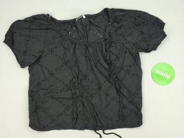 Czarna bluzka damska z haftem angielskim - Materiał: lekka bawełna z ażurowym, kwiatowym haftem (dziurkowany wzór) - Krój: luźny, z odcięciem w talii tworzącym delikatną falbanę/peplum - Rękawki: ...Stan:
