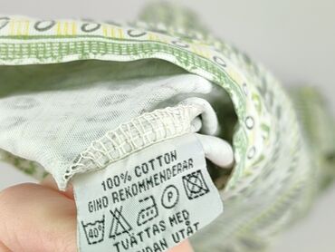 - Wzór: gęsty, geometryczno-kwiatowy print w odcieniach zieleni, bieli i delikatnej żółci; poziome pasy