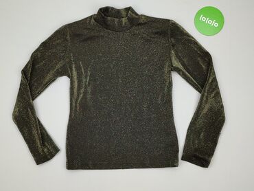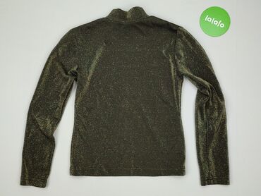 Bluzka damska z długim rękawem, zielona - Krój: krótsza, lekko crop – dół zakończony gumką, która ładnie układa bluzkę w talii. - Dekolt: w kształcie litery V, ozdobiony złotym łańcuszkiem. - Ręka...