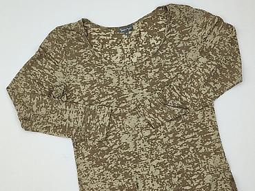 Bluzka damska z długim rękawem - Kolor: oliwkowa z melanżowym efektem - Krój: luźny, lekko wydłużony tył, okrągły dekolt - Materiał: cienka, miękka dzianina (prawdopodobnie bawełna z domieszką – m...
