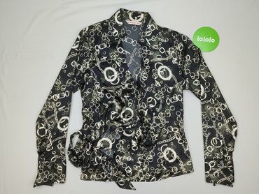 - Fason: kopertowa bluzka z wiązaniem w talii (pasek do przewiązania), głęboki dekolt V, długi rękaw z mankietem.