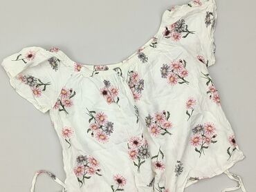 Bluzka H&M Divided – czarna w biało‑żółty wzór stokrotek - Model: koszulowa bluzka z kołnierzykiem - Zapięcie: guziki z przodu - Rękawy: długie, lekko bufiaste z marszczeniem przy mankietach - Fas...