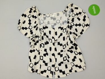 Bluzka H&M, rozmiar EUR 38 (US 8, CA 8, CN 165/88A). - Tkanina: 100% poliester (lekka, przewiewna). - Wzór: drobny, kwiatowo-abstrakcyjny print w odcieniach czerni, granatu i bieli. - Krój: luźn...