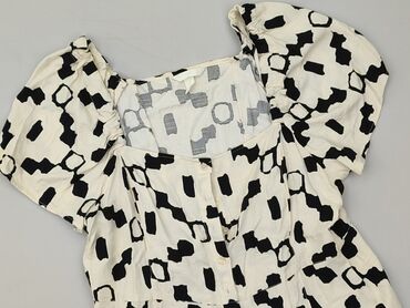 Bluzka H&M - Model: krótka, zapinana na małe guziki z przodu - Dekolt: w kształcie litery V - Rękaw: szeroki, do łokcia (kimono/rozkloszowany) - Kolor: złamana biel/ecru - Wzór/struktura: delikatn...
