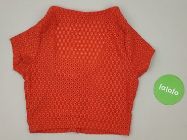 Pomarańczowa damska bluzka z krótkim rękawem - Kolor: intensywny pomarańcz - Krój: dopasowany, długość do bioder - Dekolt: okrągły - Rękaw: krótki - Materiał: elastyczna dzianina ażurowa z regular...