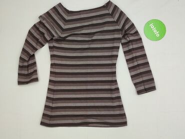 Bluzka damska H&M, rozmiar S - Fason: dopasowany, z długim rękawem - Wzór: czarno-białe, geometryczne paski układane pod różnymi kątami (efekt optyczny) - Dekolt: łódka - Materiał: dzianina elasty...