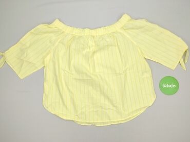 Bluzka hiszpanka w paski – H&M L.O.G.G. - Krój: hiszpanka z elastycznym dekoltem opuszczanym na ramiona - Rękawy: 3/4 z troczkami do ściągania przy mankietach - Wzór: pionowe białe paski na jasnon...