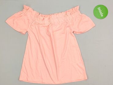 Bladoróżowa bluzka damska hiszpanka (off-shoulder) - Krój: hiszpanka z szeroką, opadającą falbaną - Dekolt/wykończenie: elastyczna gumka wokół ramion – można nosić odkrywając ramiona - Długość: do...Stan:
