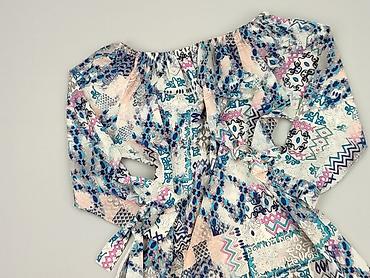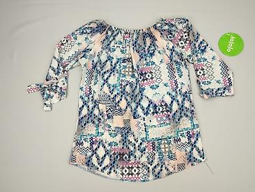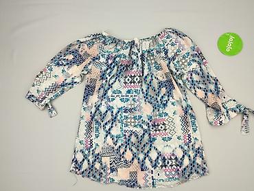 Bluzka hiszpanka w kolorowy, etniczny wzór - Fason: hiszpanka – szeroki, elastyczny dekolt opadający na ramiona - Rękawy: 3/4 z wiązaniami na końcach - Dół: zaokrąglony, delikatnie dłuższy tył - M...