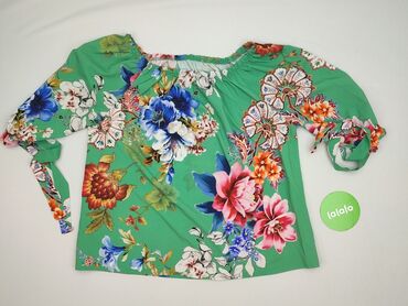 Bluzka damska z kwiatowym, retro wzorem - Rozmiar: L (na metce) - Materiał: 100% poliester – lekki, gładki, nieelastyczny - Kolorystyka: intensywny print w odcieniach zieleni, różu, bieli i mięty ...